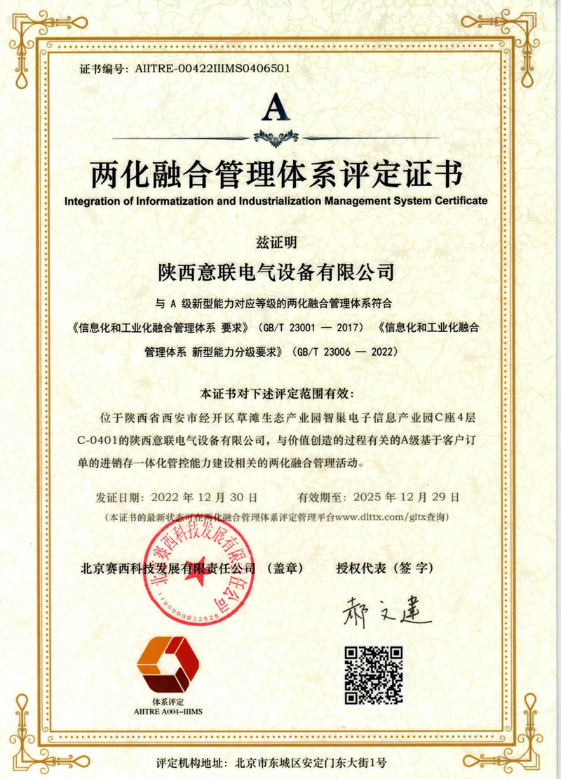 近日,陜西意聯(lián)電氣有限公司收到兩化融合管理體系評定證書,正式通過國家兩化融合管理體系貫標(biāo)認證。此前,公司積極響應(yīng)政府推進信息化與工業(yè)化融合的倡導(dǎo),開展與價值創(chuàng)造的過程有關(guān)的A級基于客戶訂單的進銷存一體化管控能力的打造,建設(shè)兩化融合管理體系,助推公司數(shù)字化轉(zhuǎn)型發(fā)展。