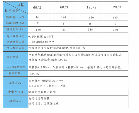 ·AI全自動(dòng)氧化鋅避雷器和油浸式變壓器測(cè)量功能。可以直接打印實(shí)驗(yàn)報(bào)告及保存實(shí)驗(yàn)報(bào)告,精度≤0.2%。保持手動(dòng)0.75UDC1mA。